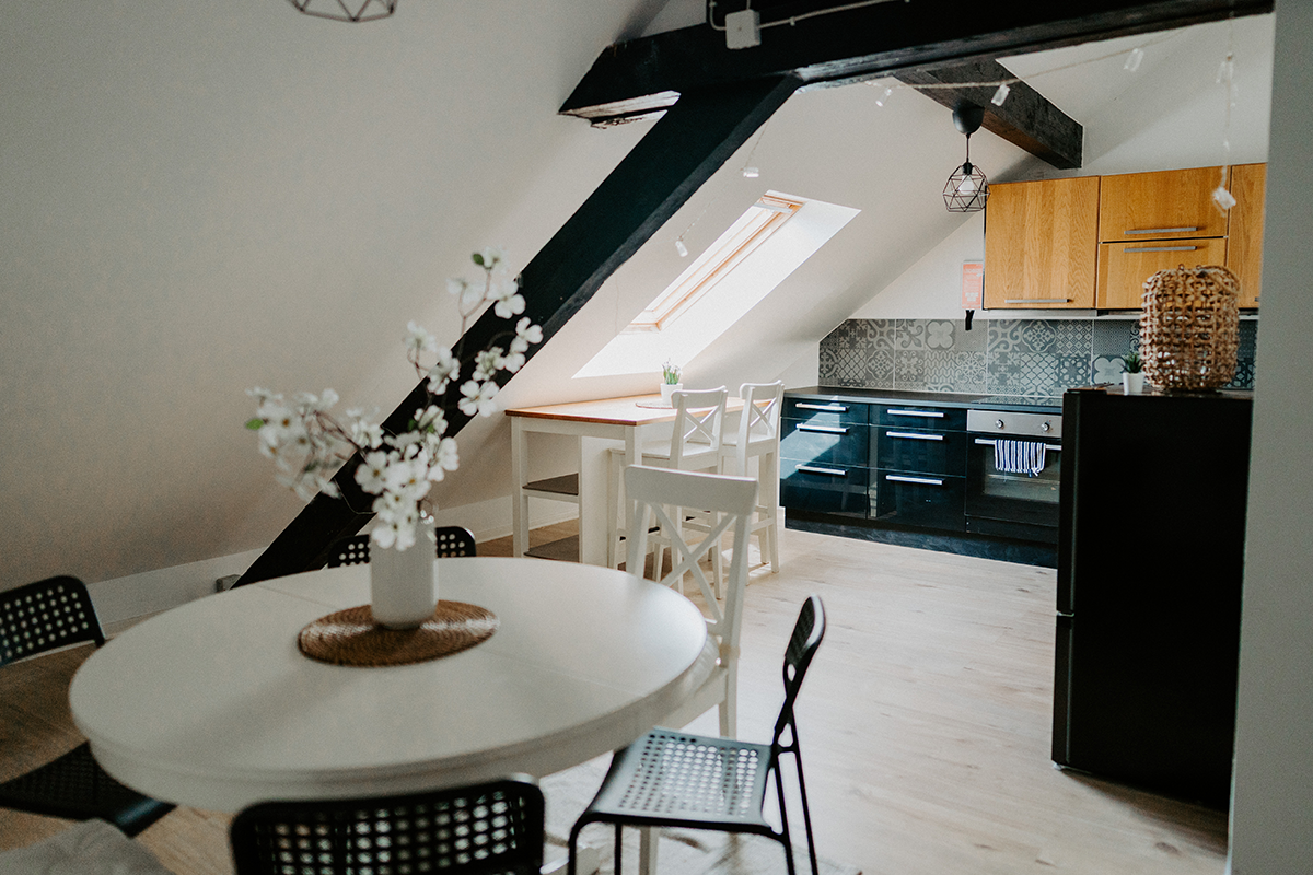 Die 8 jungen Menschen bewohnen ein eigenes Zimmer und teilen sich jeweils zu viert ein Badezimmer. Eine gemeinschaftlich genutzte Küche, ein Wohn- und Aufenthaltszimmer, ein Büro- und Verwaltungsraum sowie ein Badezimmer für die pädagogischen Fachkräfte stehen ebenfalls zur Verfügung. Zusätzlich verfügt das Haus über mehrere Abstellräume im Hinterhaus, von denen einer als Wasch- und Trockenraum genutzt wird sowie über zwei Terrassen/Balkone und einem Garten.